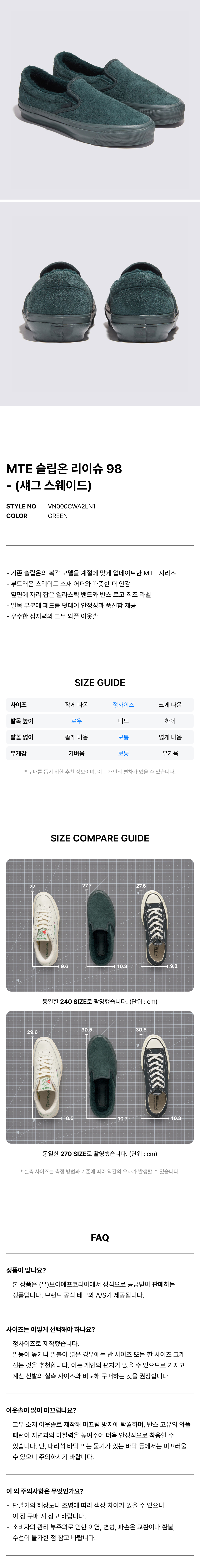 MTE 슬립온 리이슈 98 - (섀그 스웨이드) 그린 게이블 / VN000CWA2LN1
