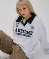 유니폼 그래픽 카라 스웻셔츠 화이트그레이