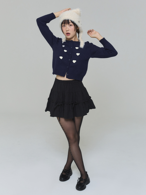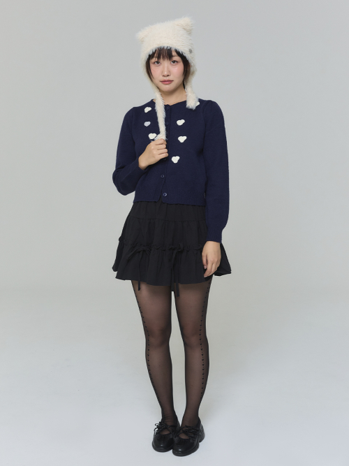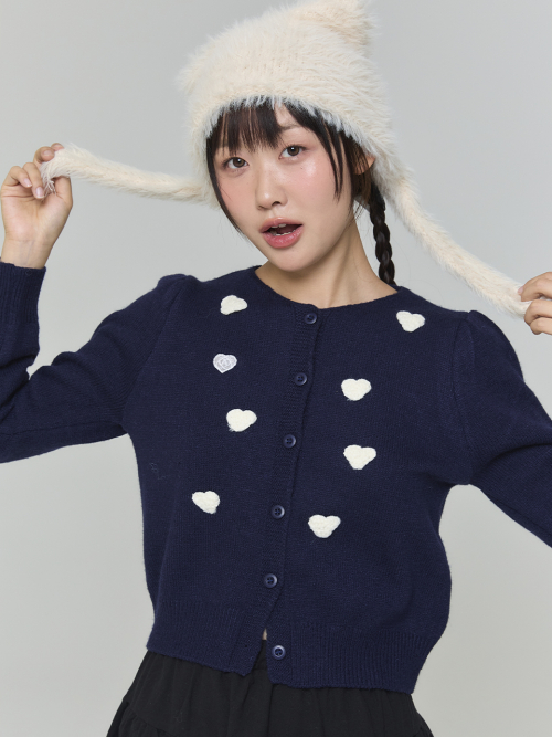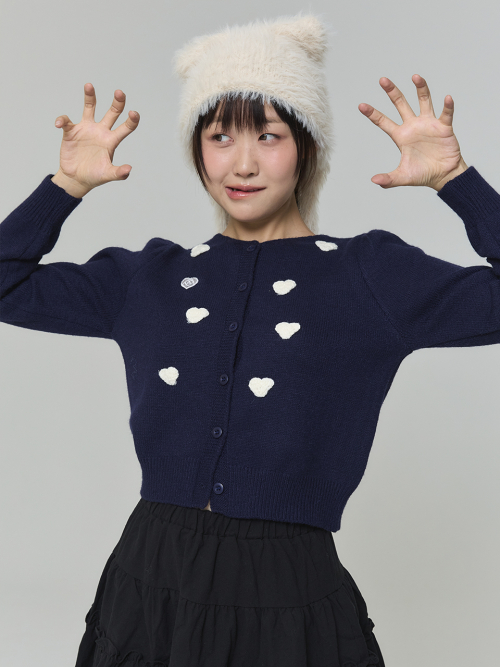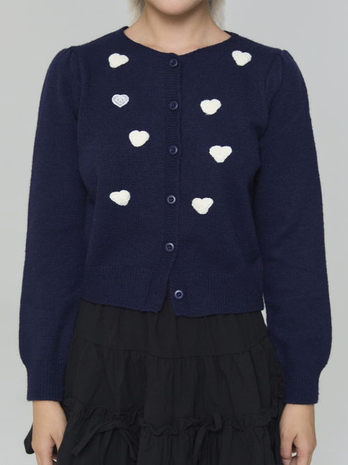 와펜 하트 가디건 - 네이비