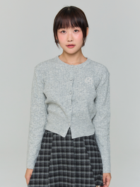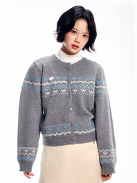 와펜 하트 패턴 가디건 - 차콜