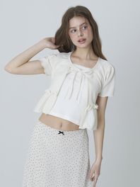 리본 레이스 프릴 가디건 - 크림