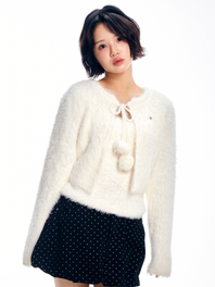 리본 방울 가디건 세트 - 아이보리