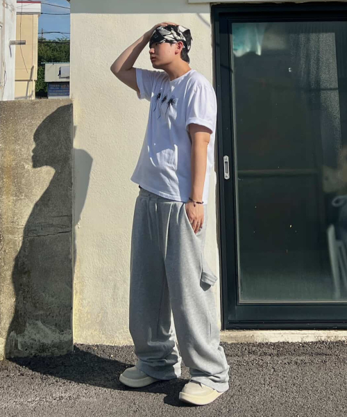 원턱 와이드 카고 스웨트 팬츠 [그레이]