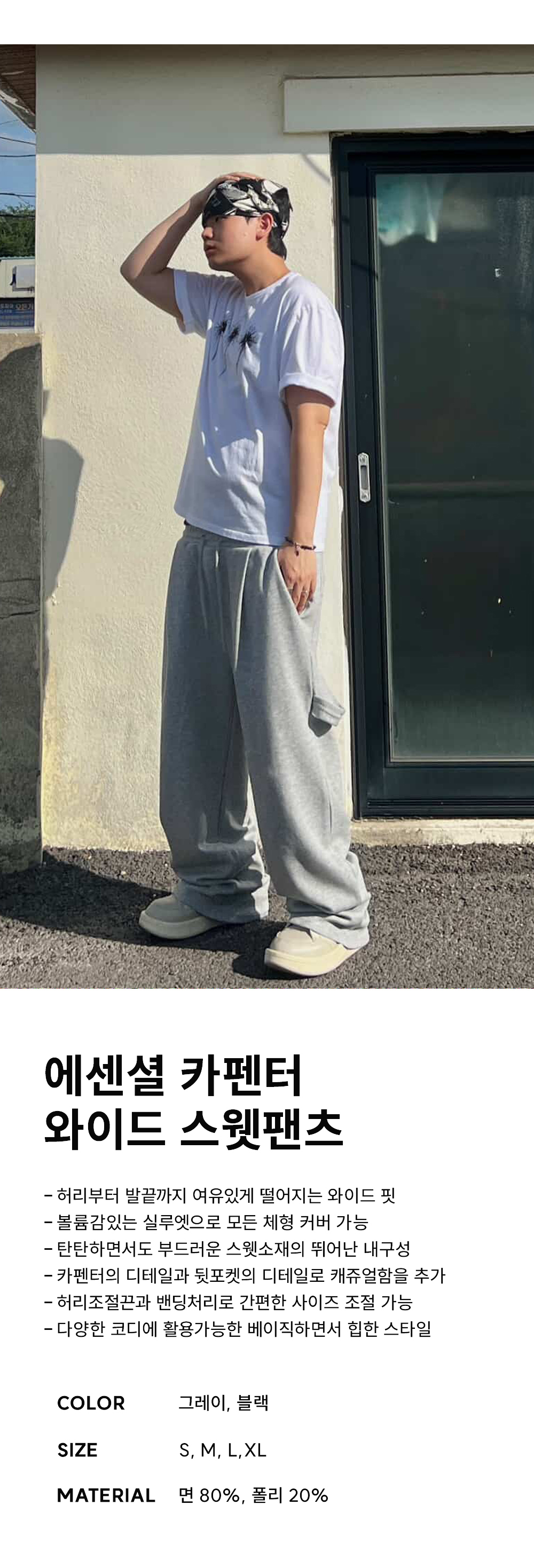 에센셜 카펜터 와이드 스웻 팬츠 [멜란지그레이]