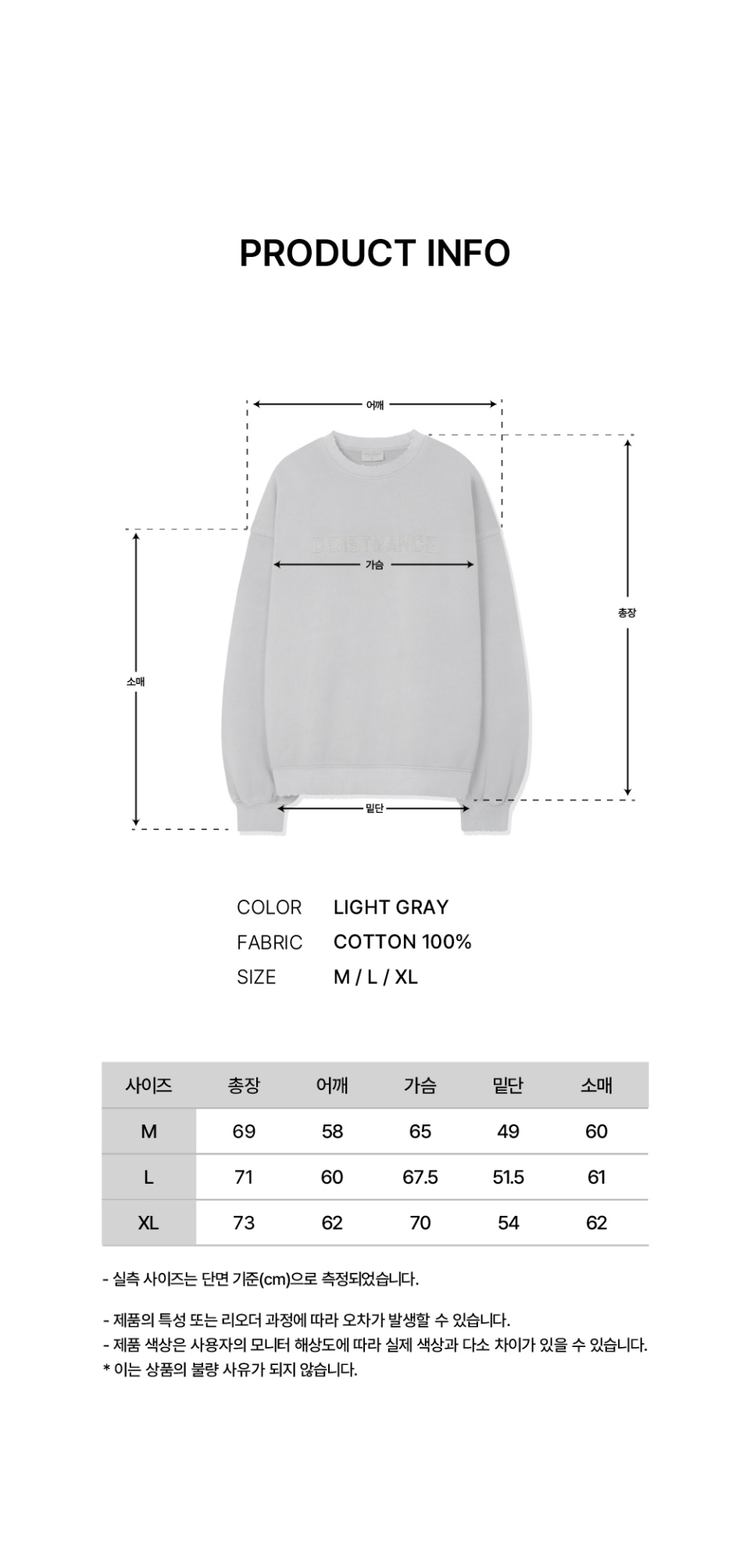 터프 그레인 피그먼트 스웨트셔츠 [라이트그레이]