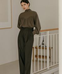 Flat Pintuck Slacks _ Brown