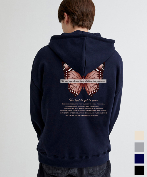 나비 프린팅 오버핏 후드티