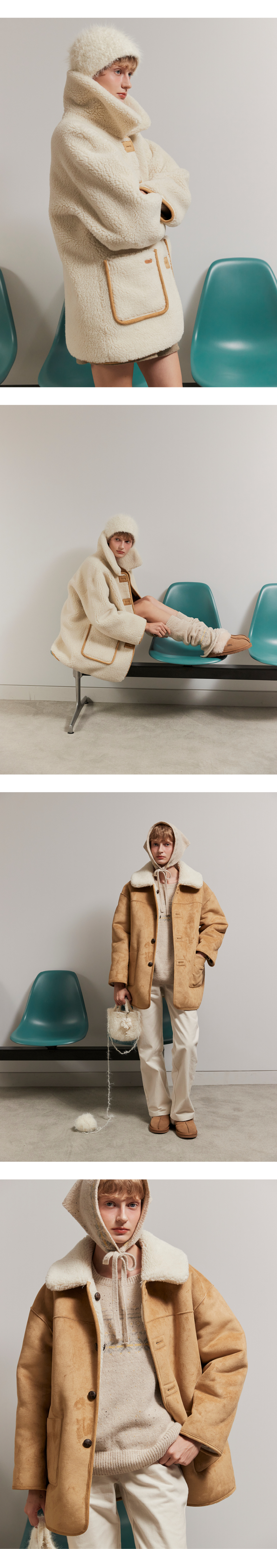 REVERSIBLE SHEARLING HALF COAT_BUTTER BEIGE