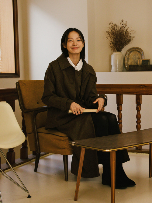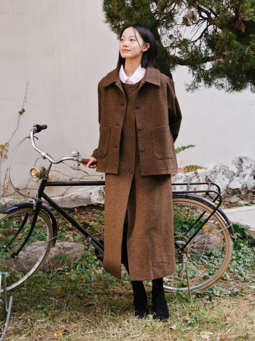 울 트위드 숏 자켓_브라운