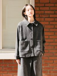 울 트위드 숏 자켓_다크 그레이