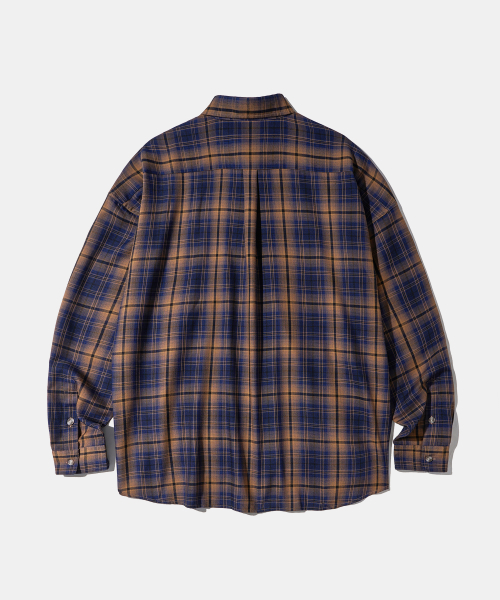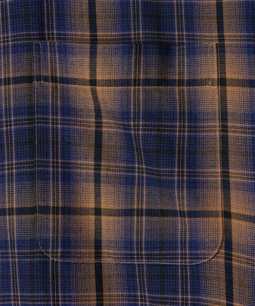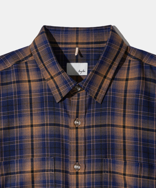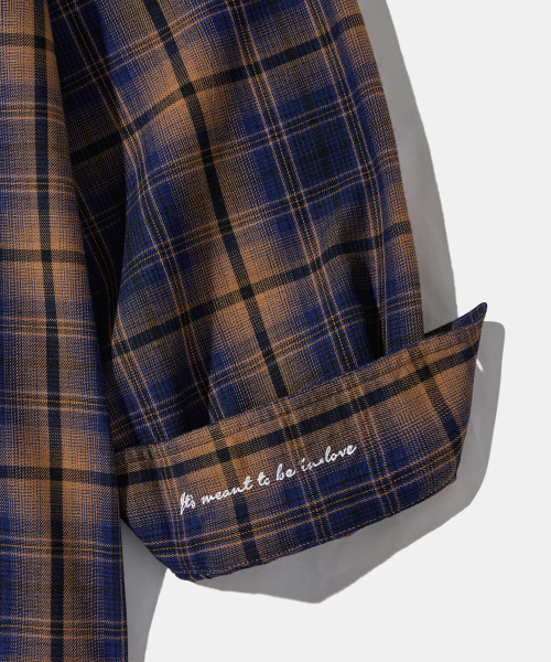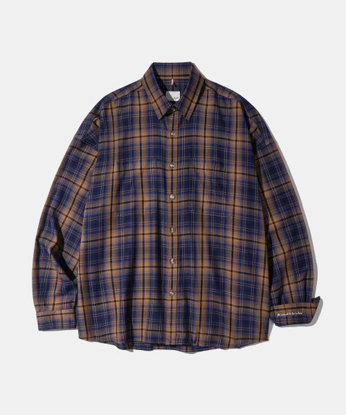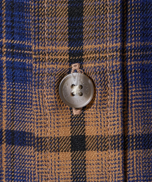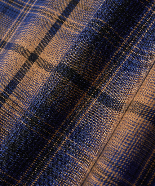 - 저녁노을이 지는 해변의 풍경이 연상되는 캐러멜와 네이비 체크 원단