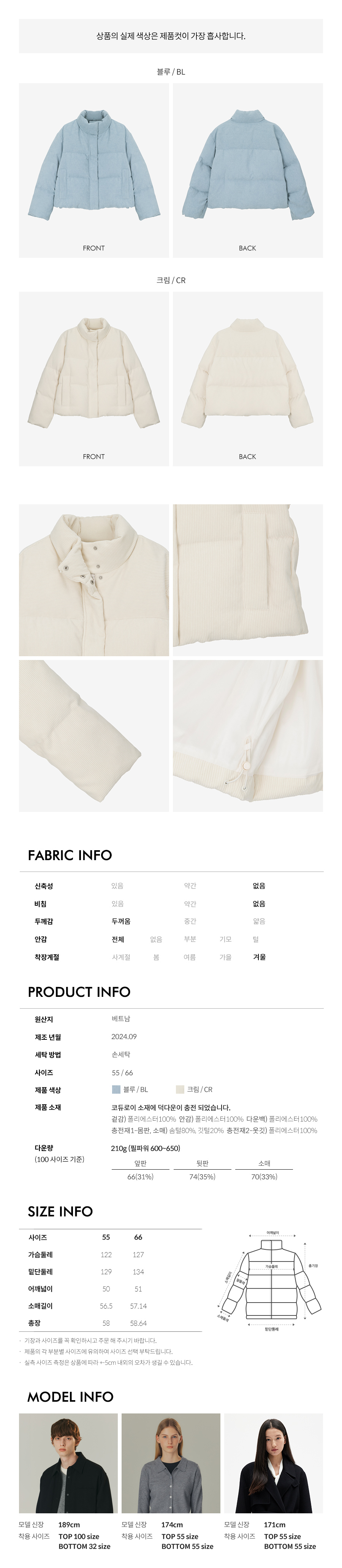 [W]두굿_코듀로이다운점퍼 - 2color MYDJ8206