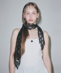 시스루 새틴 라벨 슬림 링클 스카프 롱 머플러