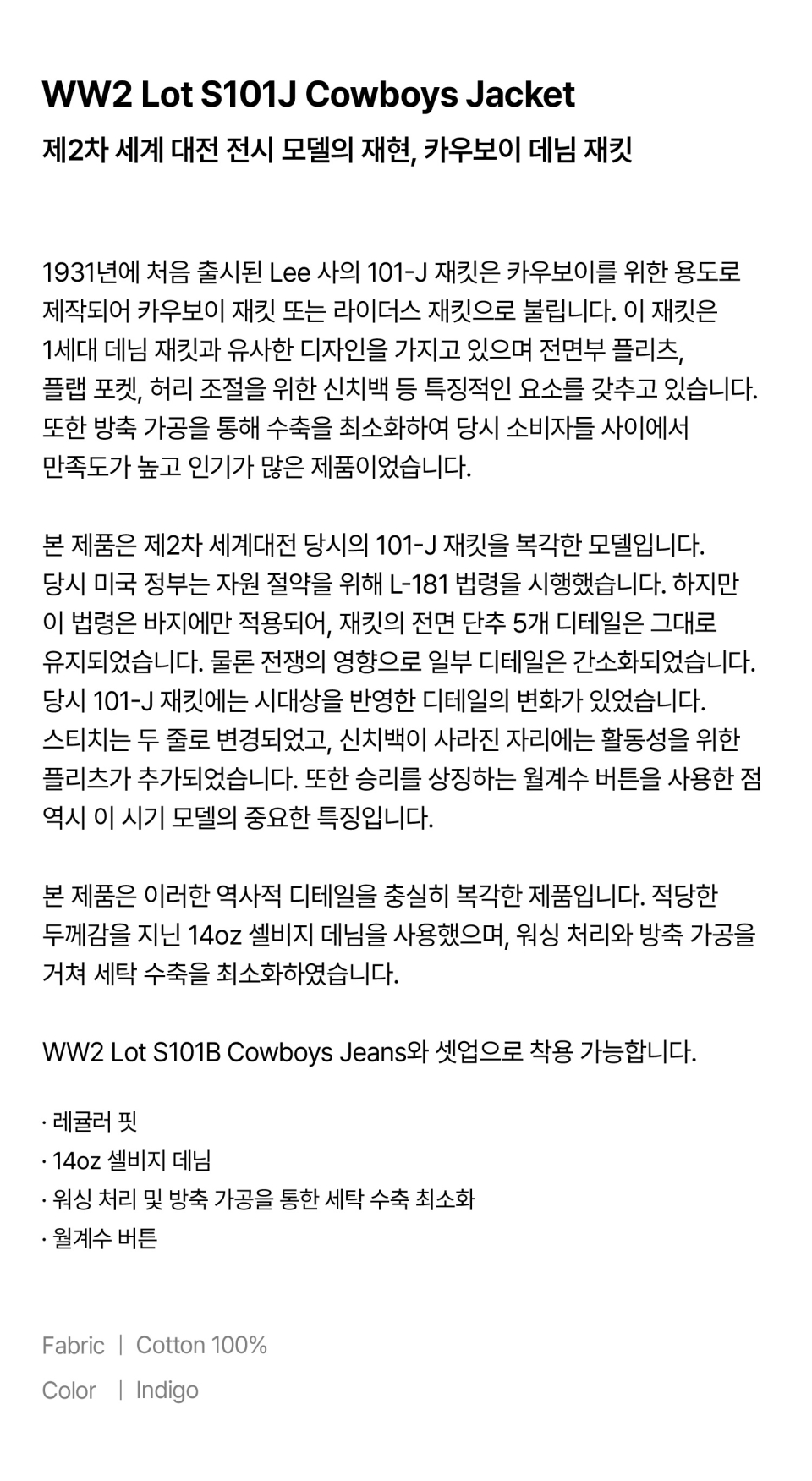 WW2 Lot S101B Cowboys Jeans