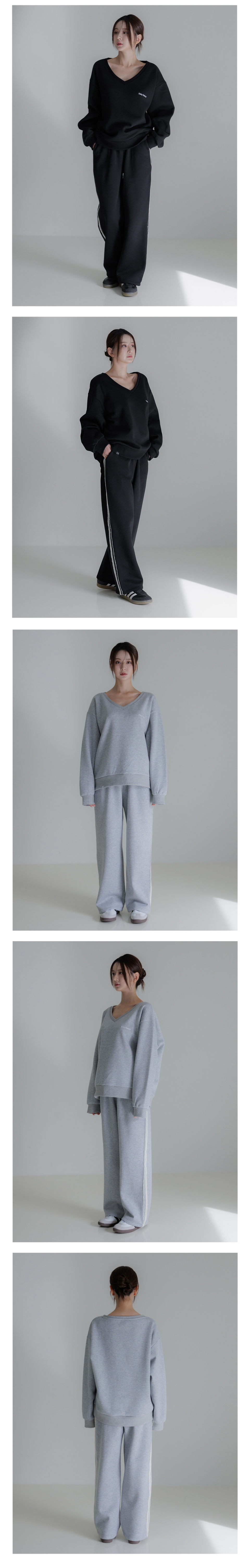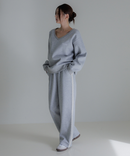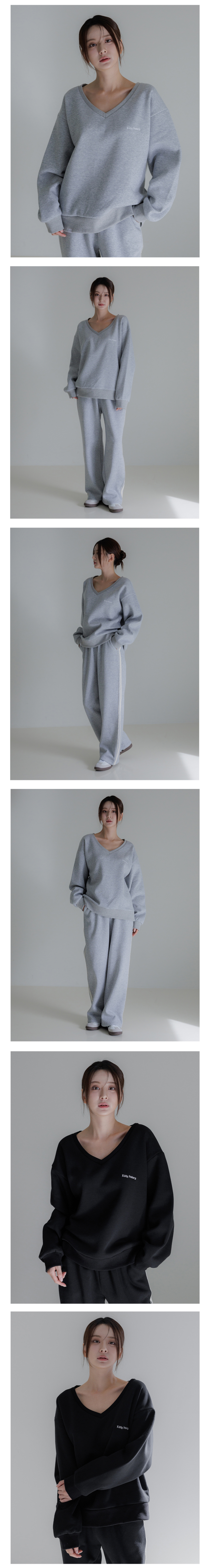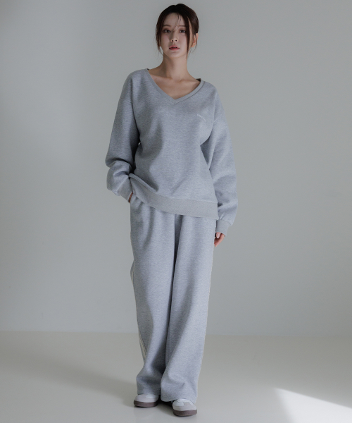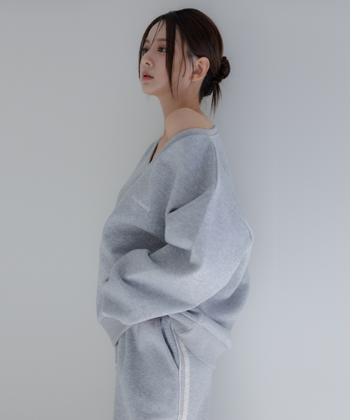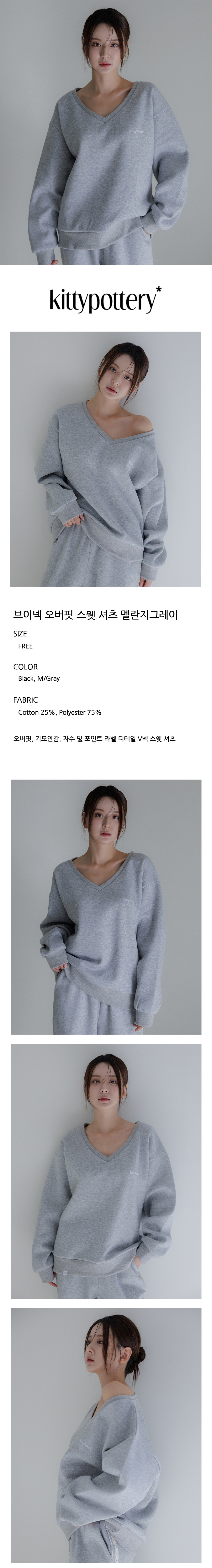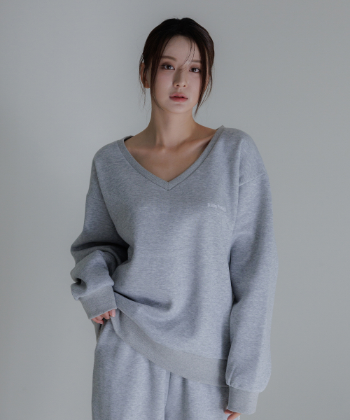 브이넥 오버핏 스웻 셔츠 멜란지그레이