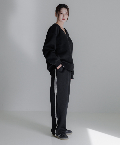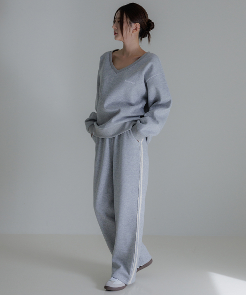 레이스 라인 테잎 스웻 팬츠 멜란지그레이