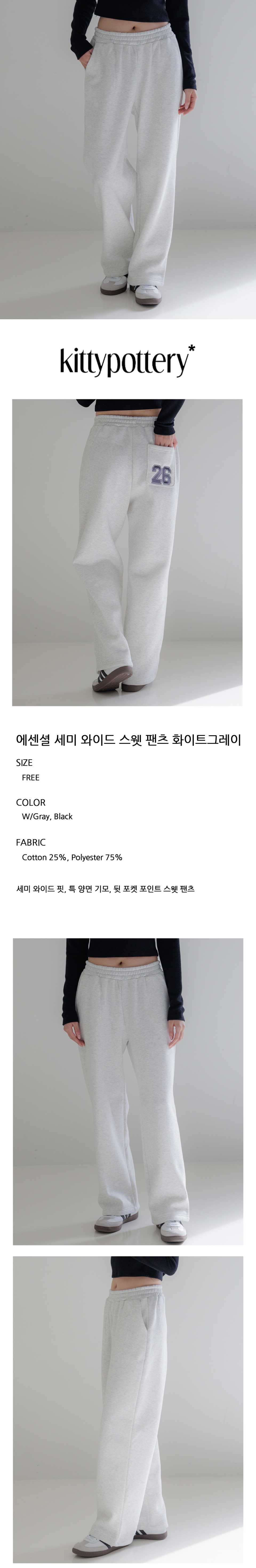 에센셜 세미 와이드 스웻 팬츠 화이트그레이
