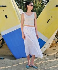 우먼즈 코튼 티어드 롱 스커트 [화이트]