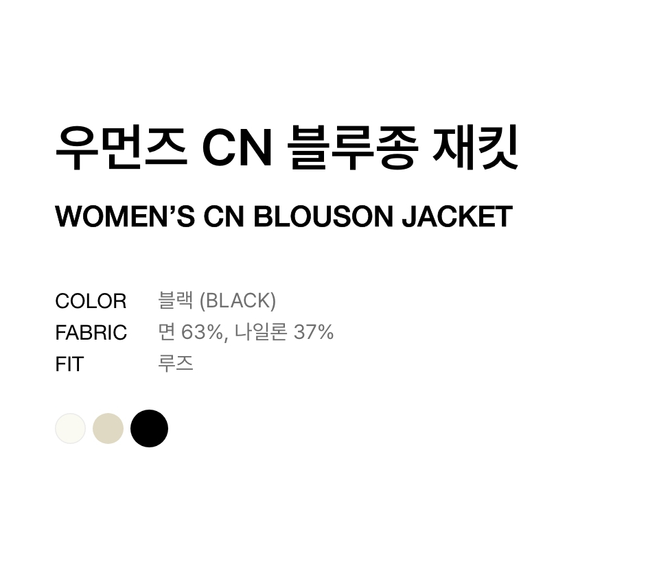 우먼즈 CN 블루종 재킷 [블랙]