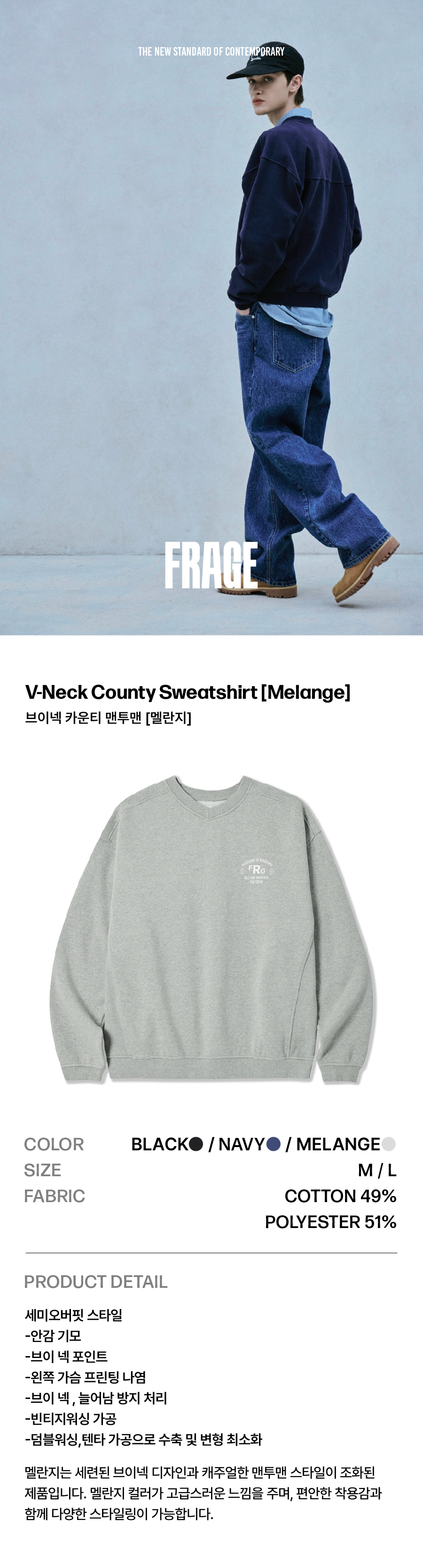 브이넥 카운티 맨투맨 - 멜란지