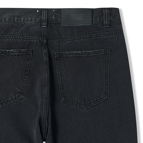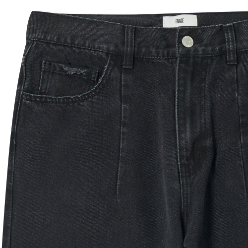 와이드 스트레이트 데미지 블랙 데님 팬츠