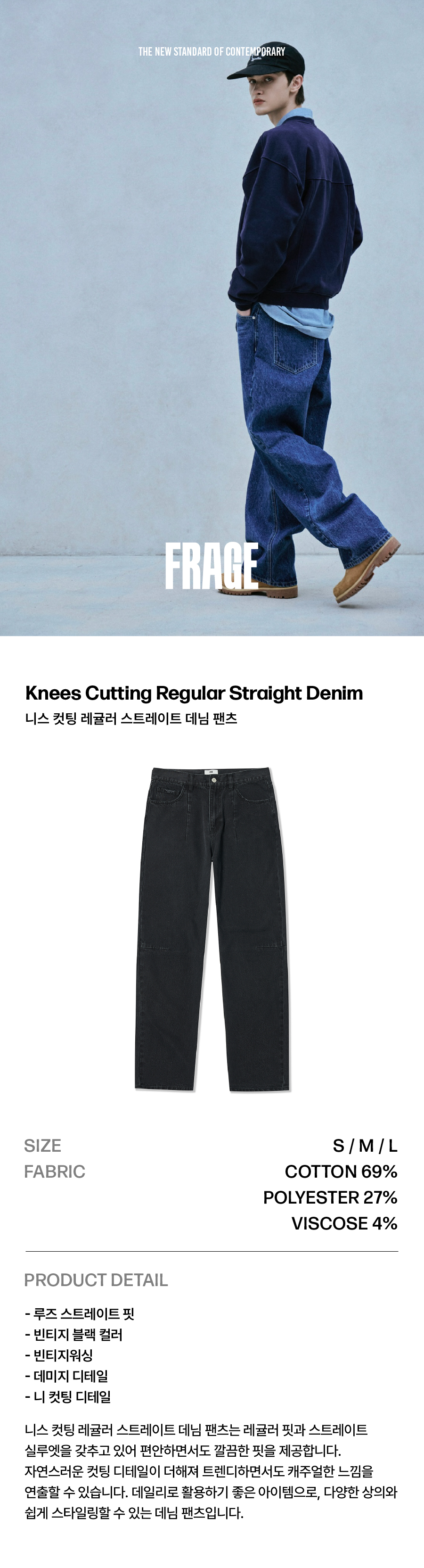 니스 컷팅 레귤러 스트레이트 데님 팬츠