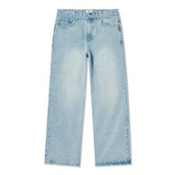 라이트 블루 와이드 스트레이트 데미지 데님 팬츠