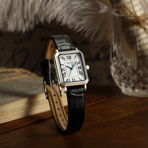 저소음 스퀘어 가죽 메탈 여성손목시계 사각케이스 쇼핑백증정