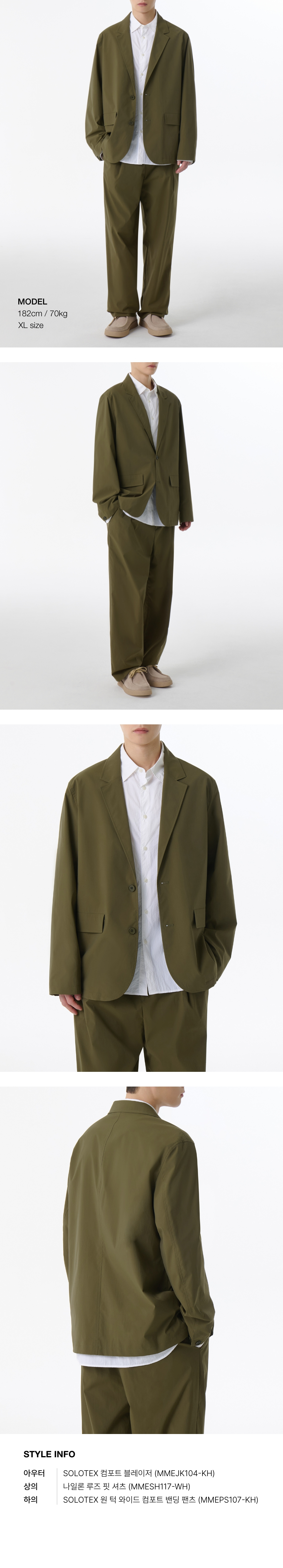 SOLOTEX 원 턱 와이드 컴포트 밴딩 팬츠 [카키]