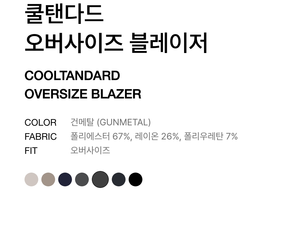 [쿨탠다드] 오버사이즈 블레이저 [건메탈]
