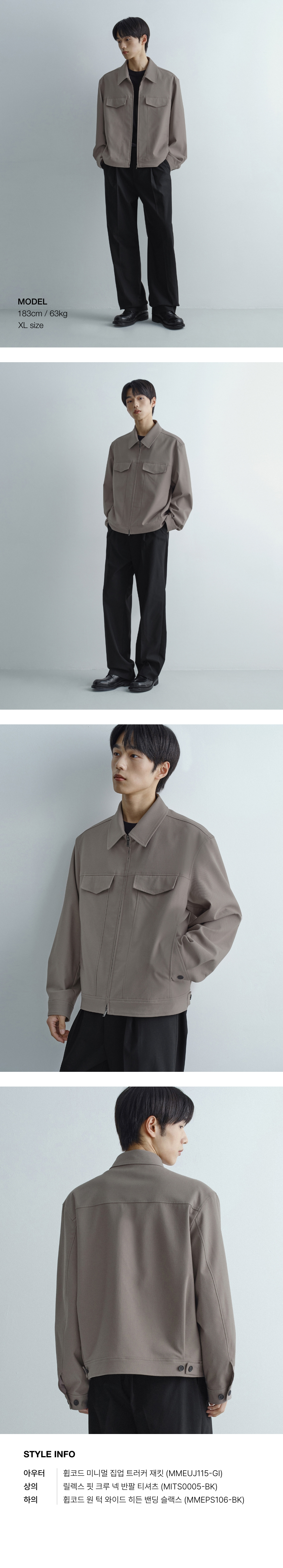 휩코드 미니멀 집업 트러커 재킷 [그레이쉬 베이지]
