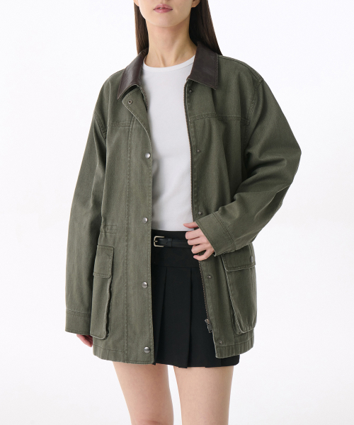 우먼즈 워시드 코튼 헌팅 재킷 [카키]