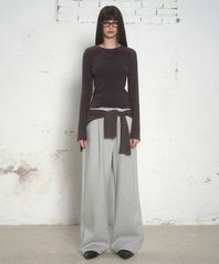 우먼즈 피그먼트 리브드 슬림 크루 넥 긴소매 티셔츠 [차콜 그레이]