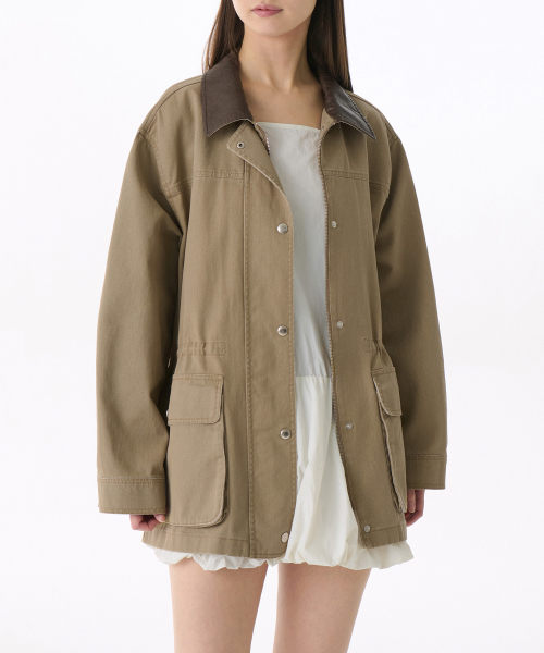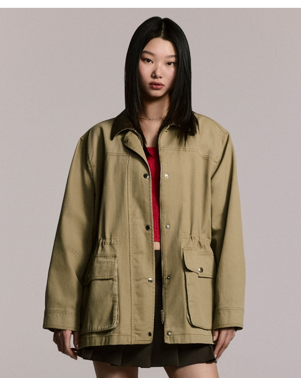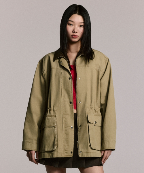 우먼즈 워시드 코튼 헌팅 재킷 [카키]