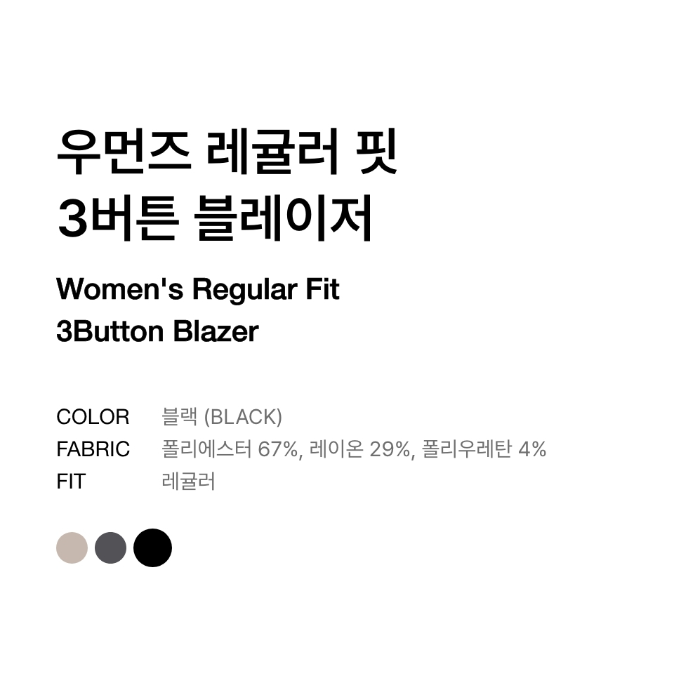 우먼즈 레귤러 핏 3버튼 블레이저 [블랙]