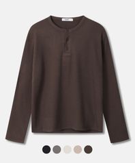 리브드 세미 크롭 핸리넥 롱슬리브 - 5COLOR