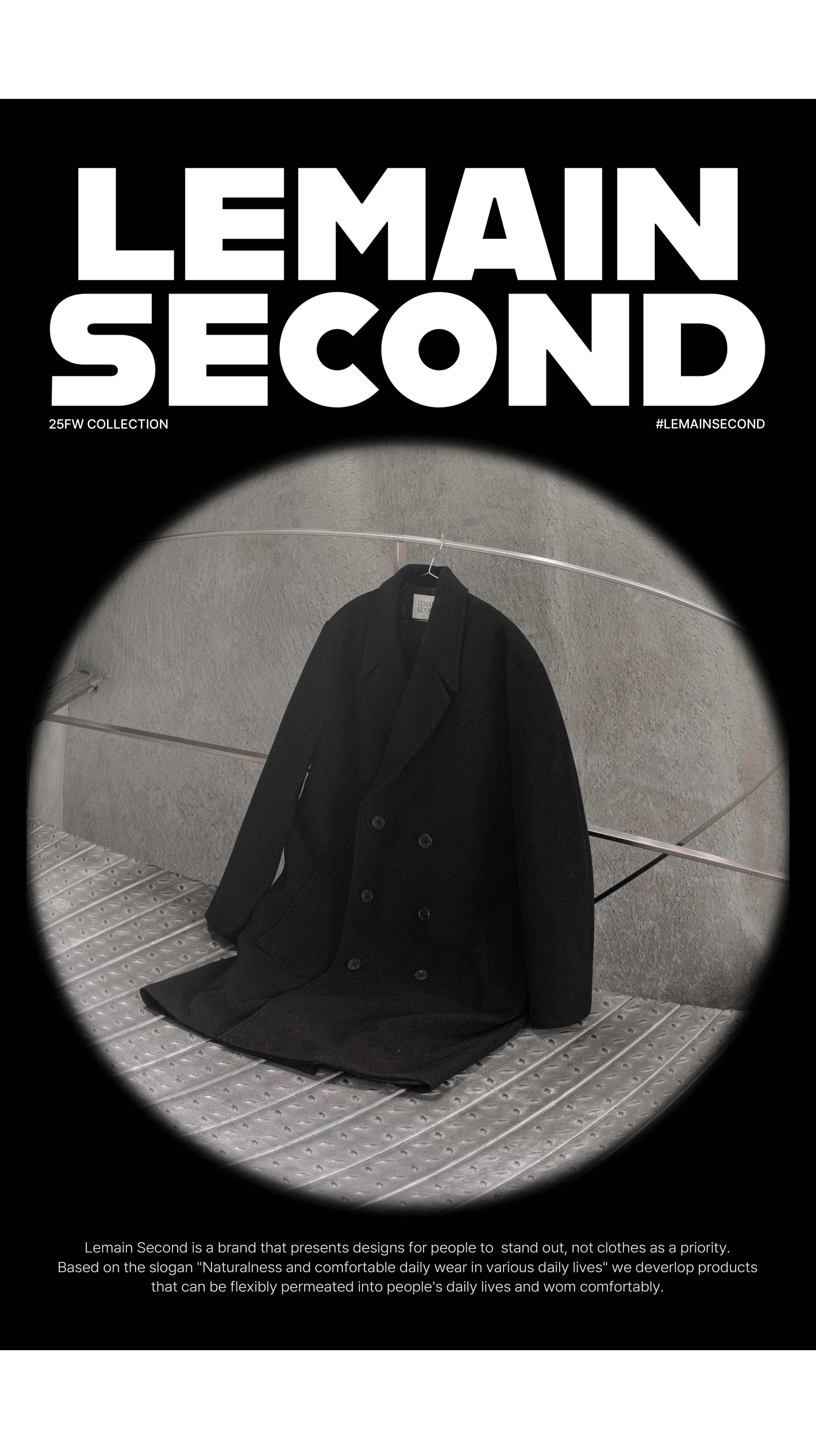 리메인세컨드(LEMAIN SECOND)는 옷이 우선이 아닌, 사람이 돋보이기 위한 디자인을 선보이는 브랜드입니다. '다양한 일상 속에서의 자연스러움, 그리고 편안한 데일리 웨어'라는 슬로건을 바탕으로 사람들의 일상에 유연하게 스며들어 편안하게 착용할 수 있는 상품을 전개합니다.