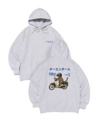 RIDING BIKE CAT 오버핏 후드 티셔츠 (라이트 그레이)
