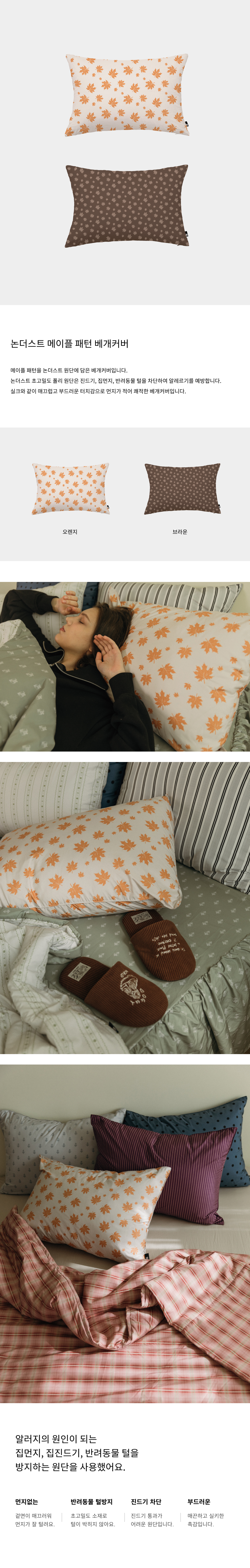 논더스트 메이플 패턴 알러지케 베개커버 2color