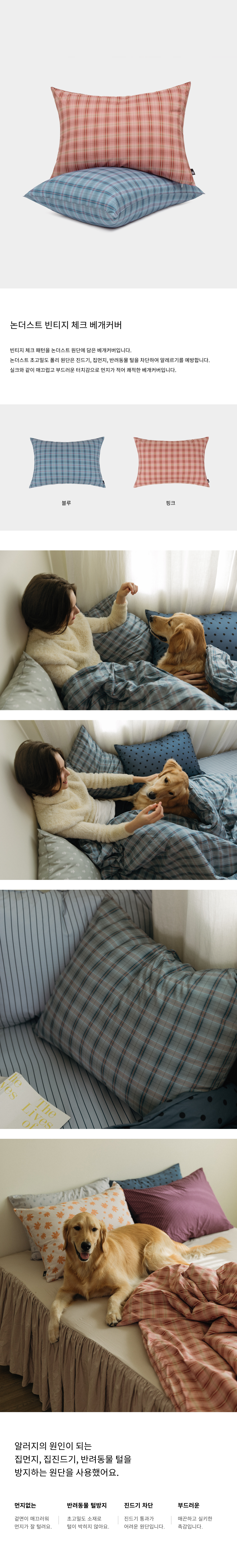 논더스트 빈티지 체크 알러지케 베개커버 2color