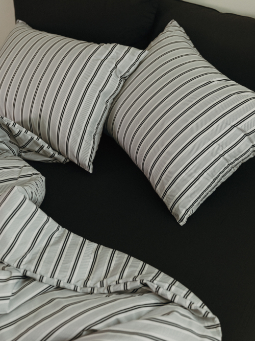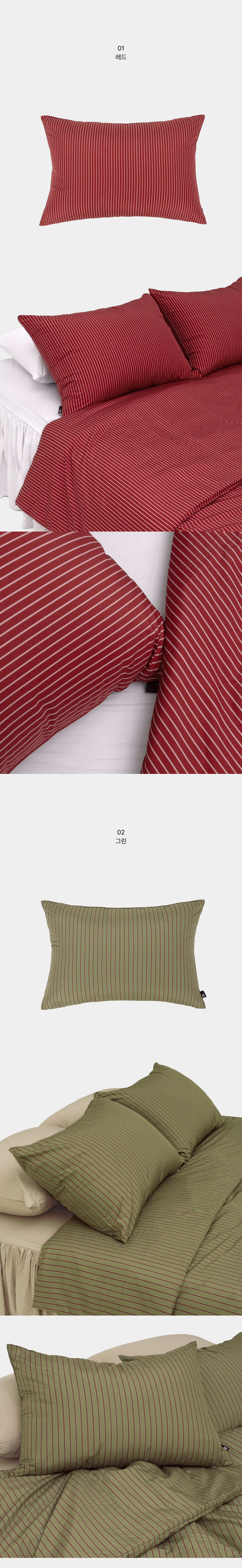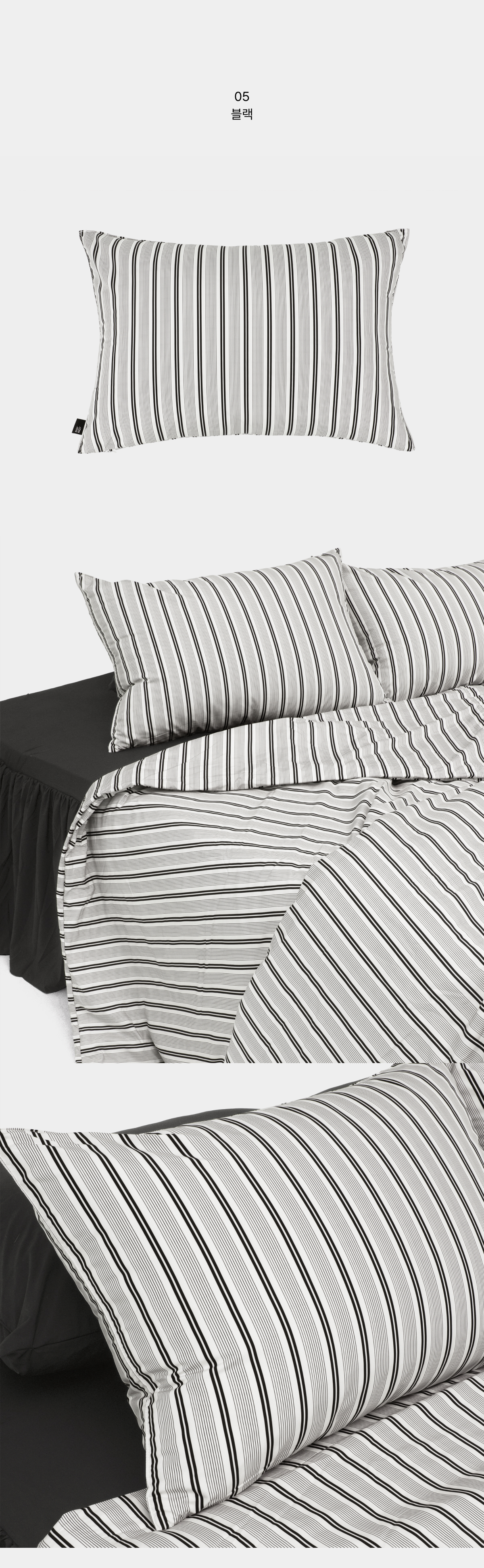 베이직 스트라이프 고밀도 순면 자루형 리본 베개커버
