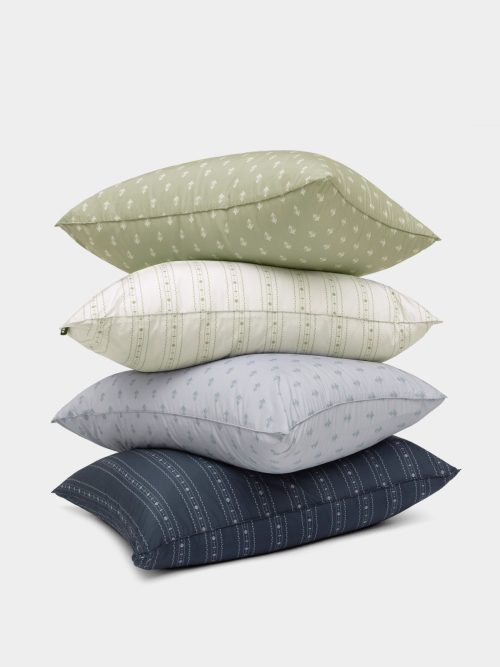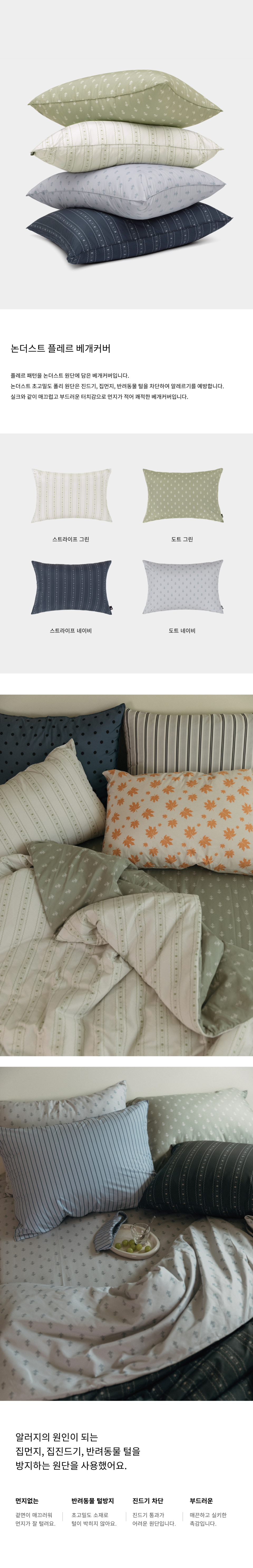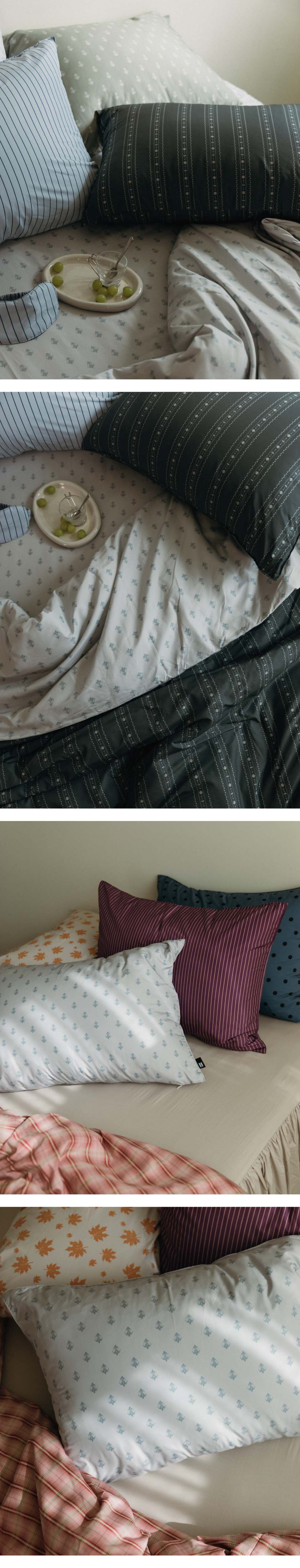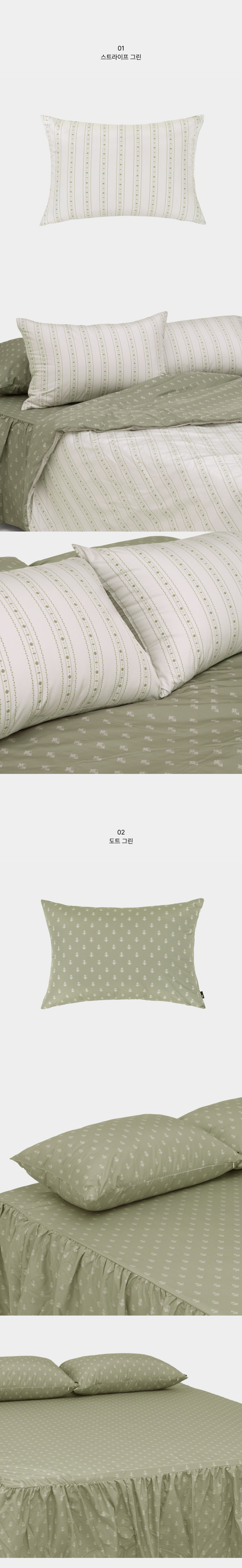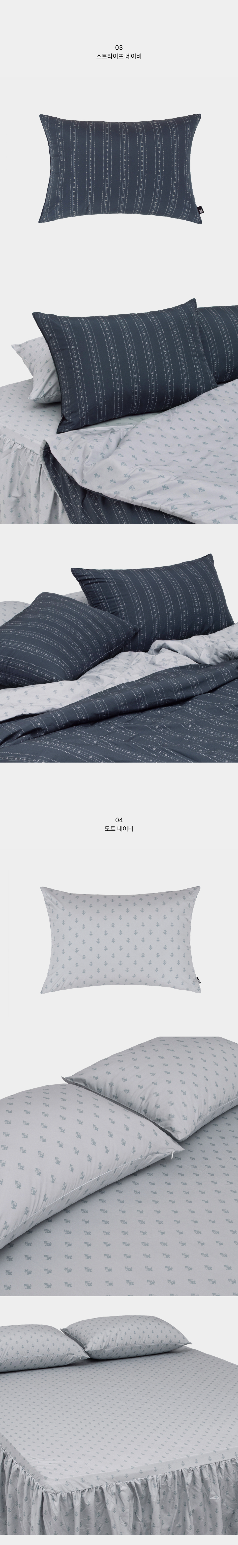 베이직 스트라이프 고밀도 순면 자루형 리본 베개커버