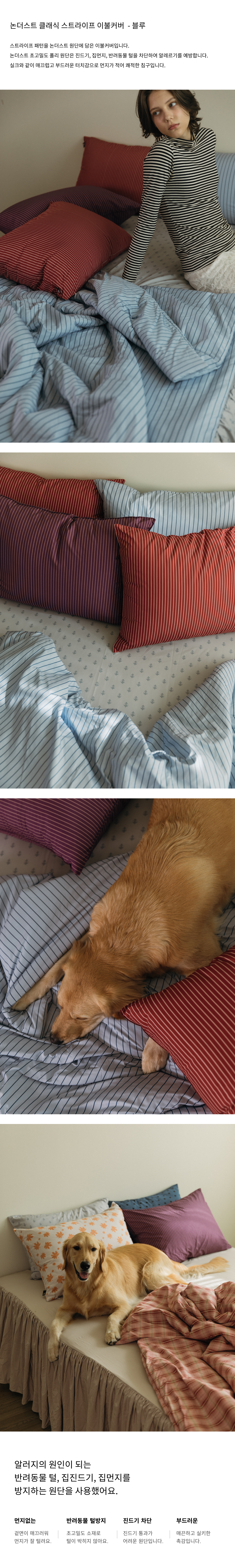 논더스트 클래식 스트라이프 알러지케어 이불커버 - 블루 3size