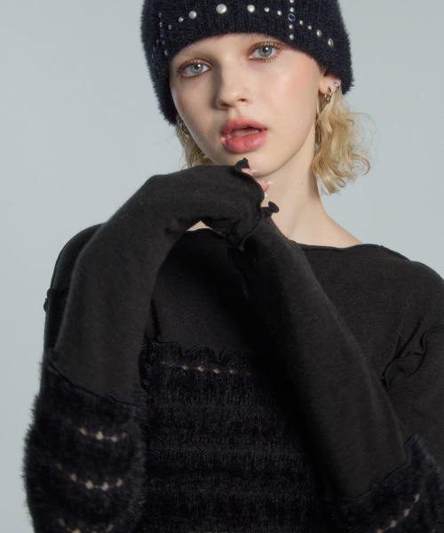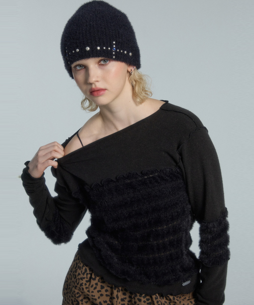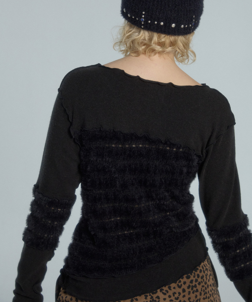 퍼 레이스 언밸런스 티셔츠 (검정)