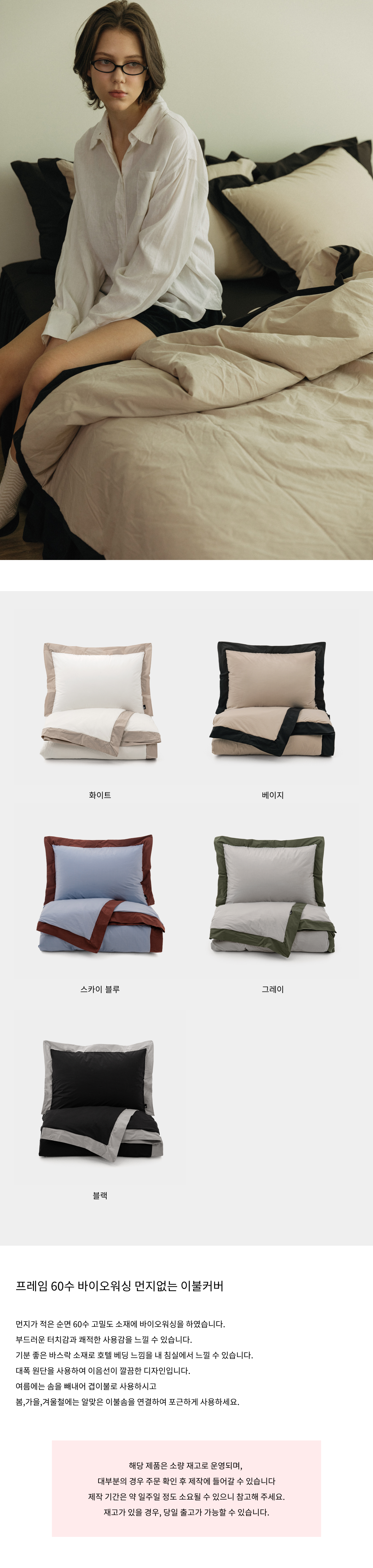 프레임 60수 바이오워싱 먼지없는 이불커버 5colors