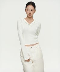 우먼즈 리브드 슬림 후디드 긴소매 티셔츠 [아이보리]