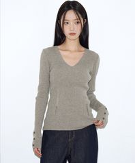 데미지드 브이넥 리브드 니트 [우드]