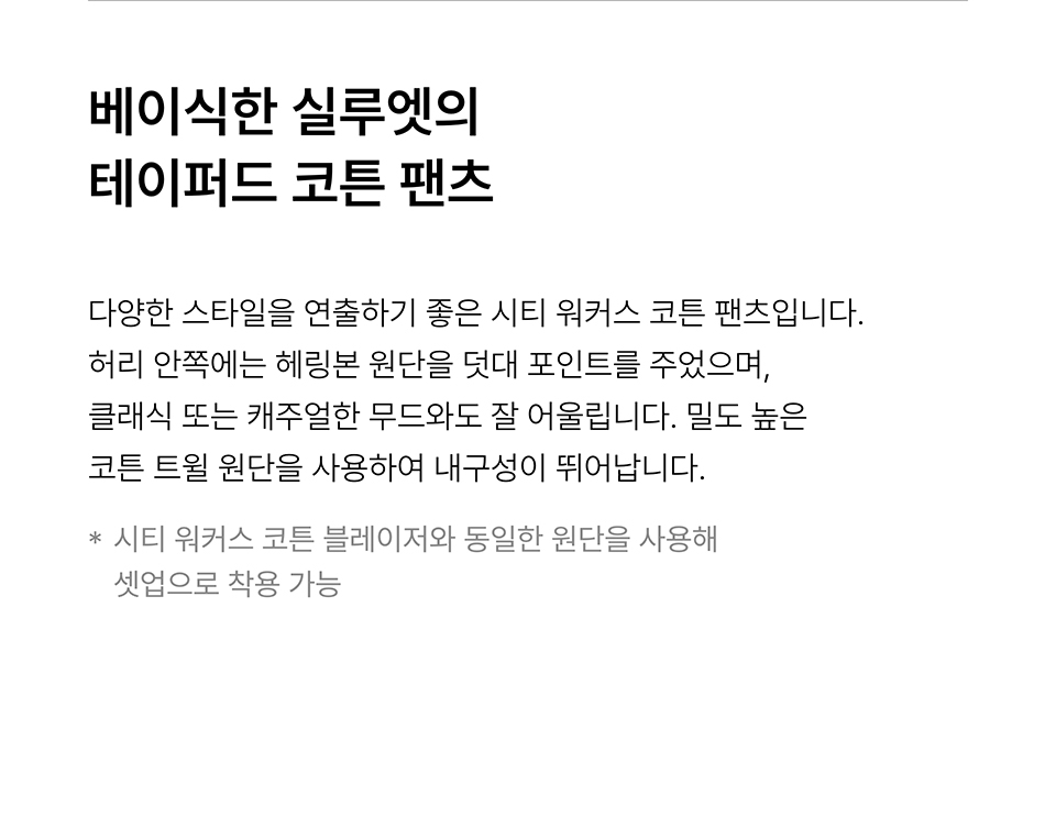시티 워커스 테이퍼드 코튼 팬츠 [베이지]