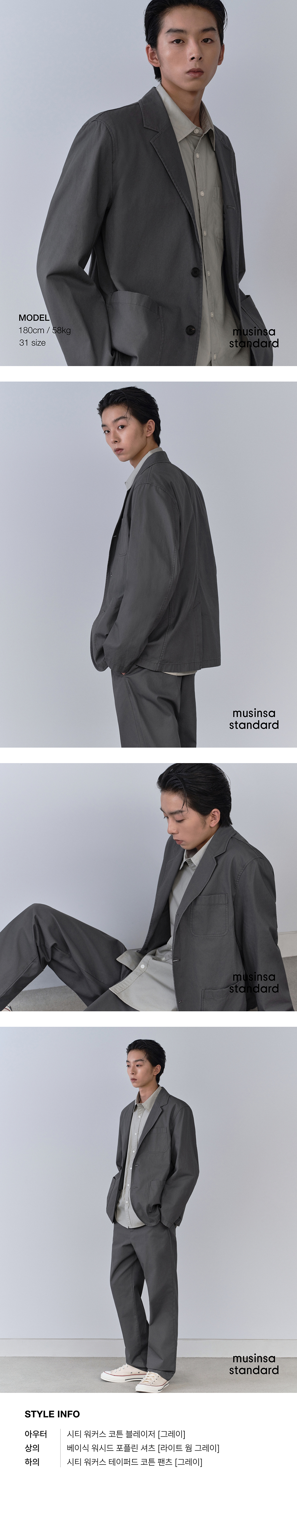 베이식 워시드 포플린 셔츠 [라이트 웜 그레이]