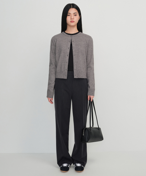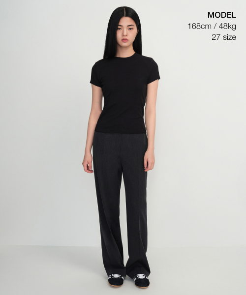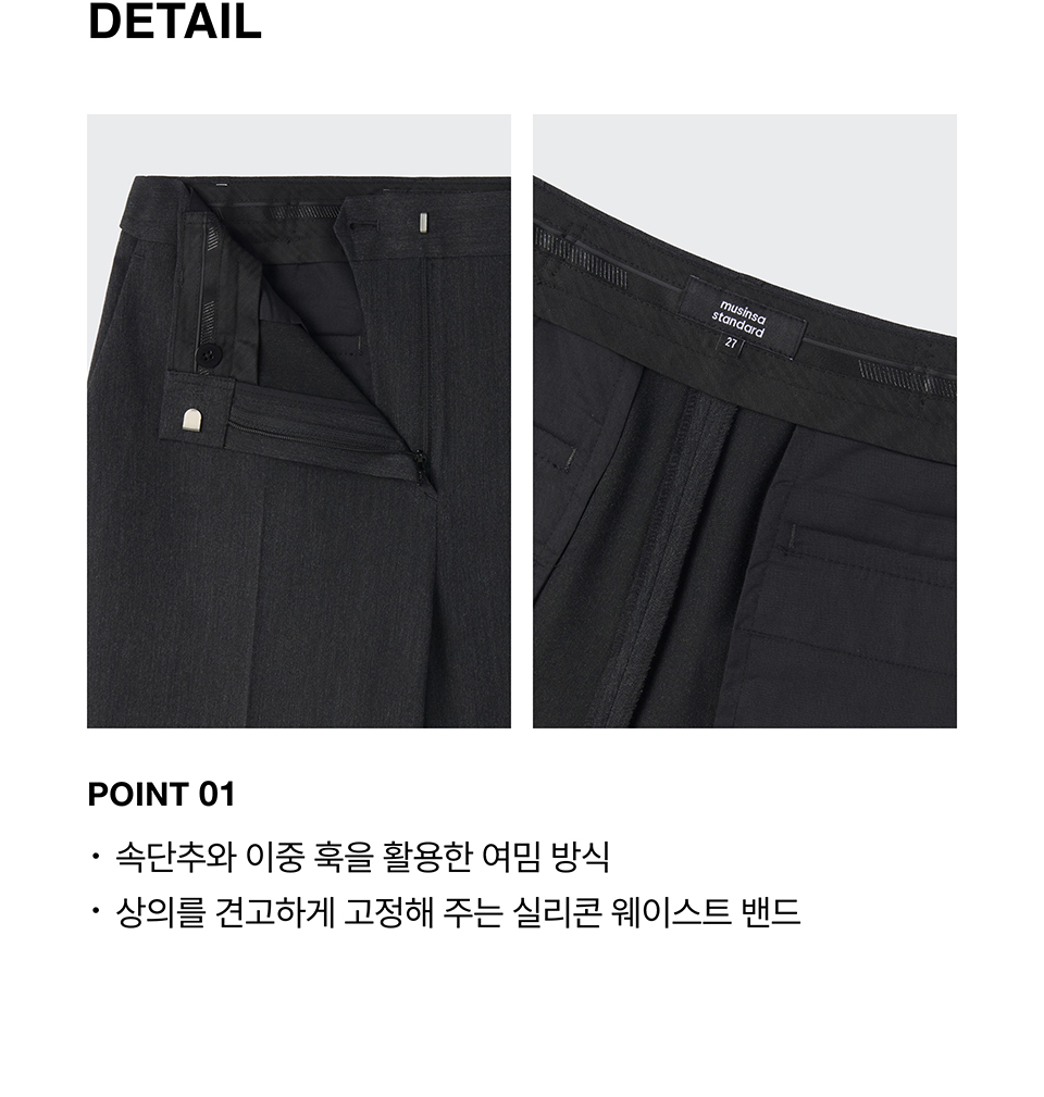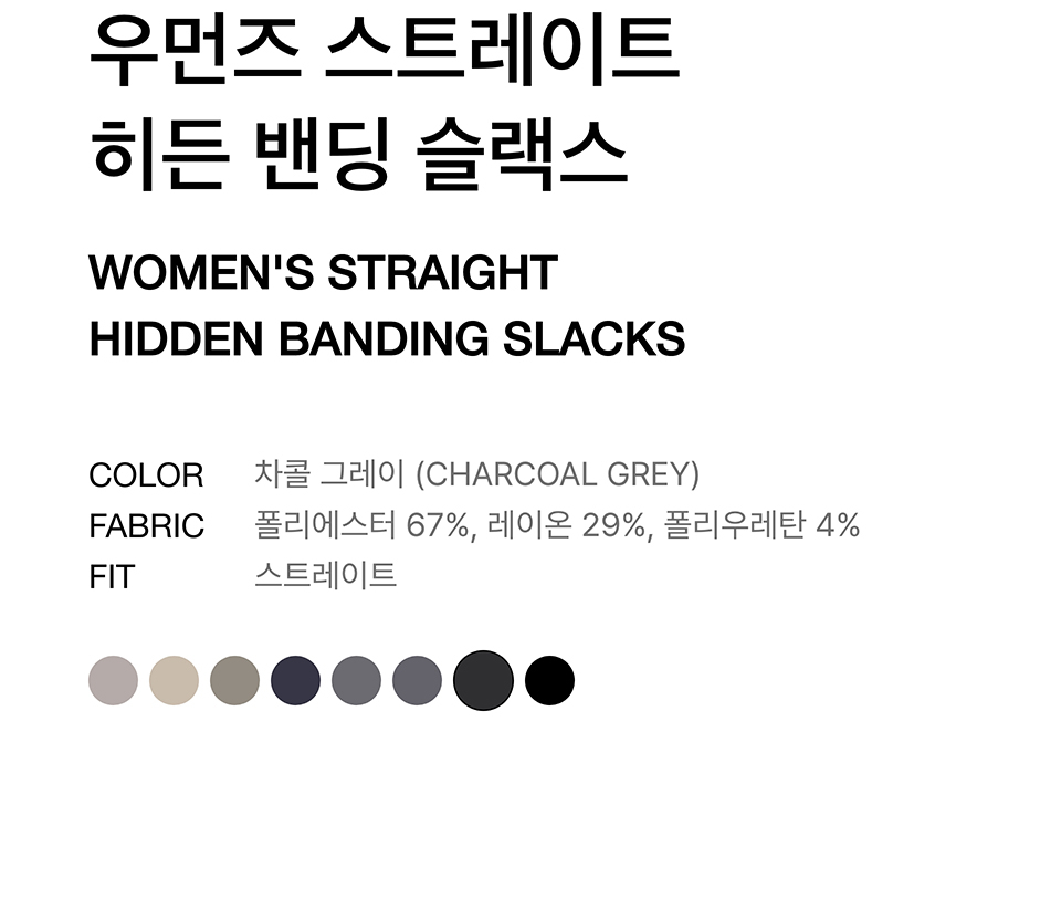 우먼즈 스트레이트 히든 밴딩 슬랙스 [차콜 그레이]